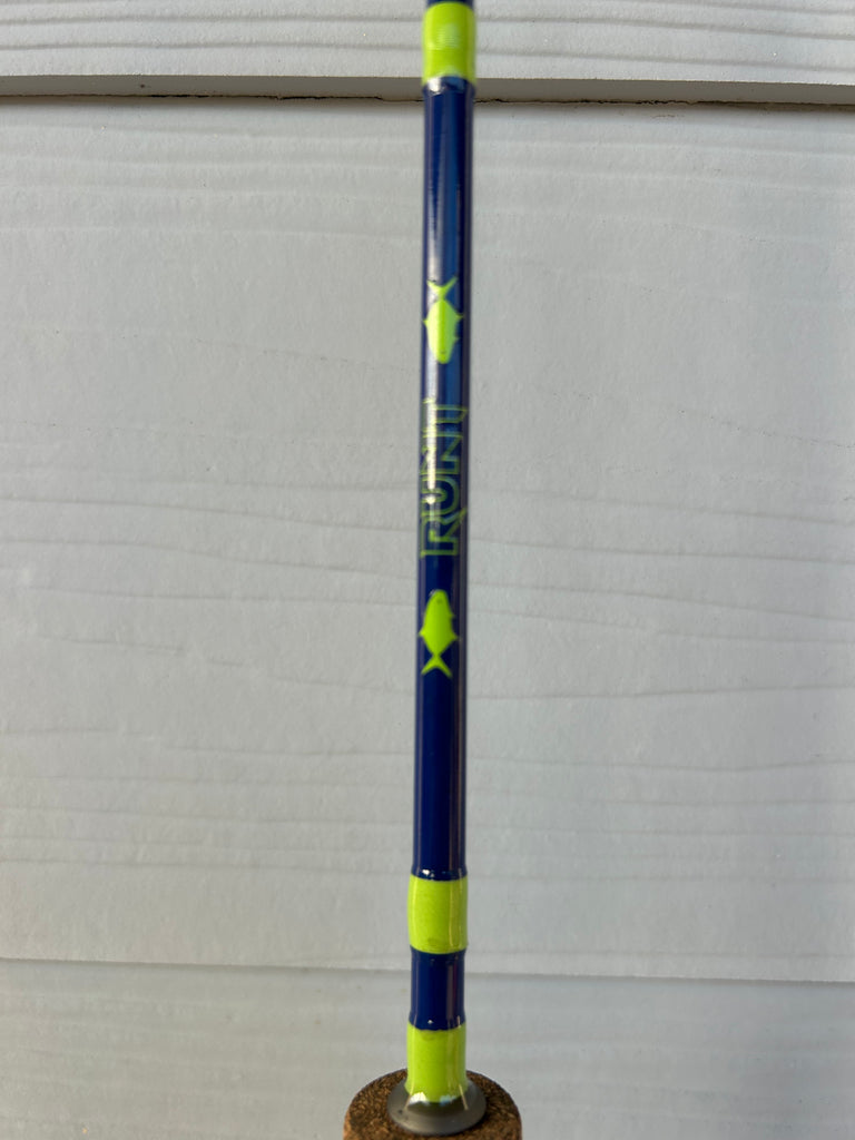 The Runt Rod is a 4'6 ultralight fast action fishing rod. I love the 100% real cork handle. The rod is lined with 6 ceramic guides. Made from hybrid fiberglass to withstand a beating whether catching a big Whiting, Bass, Pompano, Bull Drum, BIG SNAPPER, or whatever you want to target. Of course you may need a bigger reel for larger species.